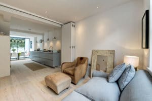 This gave an interesting opportunity not only for a total refurbishment and modernisation but the creation of a larger 2 bedroom dwelling with an open plan kitchen/living room and a small yet private and cosy garden. An apartment that would certainly appeal to a professional couple.