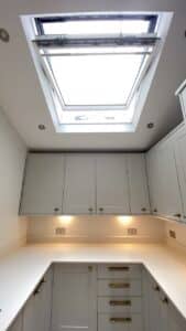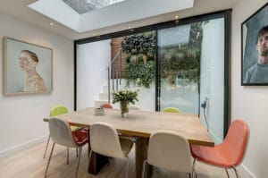 • Refurbishment included (entailed) creating open plan ground floor with new modern kitchen, lit by motorised skylight, utility room and very spacious living / dining area.