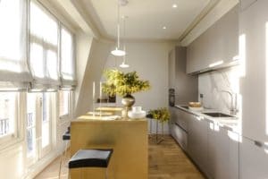 • Creating a modern kitchen space by incorporating into the area of a large front living room.