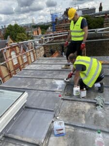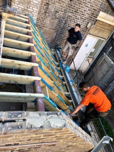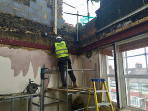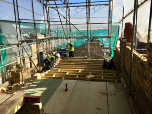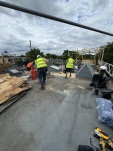 Roof works – existing fibreglass covering has been removed, new plydeck, VCL membrane, Kingspan insulation and finally 3 ply felt system installed.