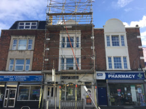 Full external refurbishment / redecoration to front facade including joinery and masonry.