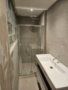 Full refurbishment of en-suite bathroom – cabin shower room changed to walk in shower.