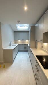 • Extending the flat from one living room and 1 bedroom with no separate bathroom into a totally modern spacious 2 bedroom apartment.