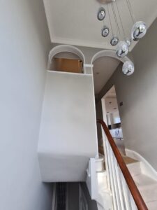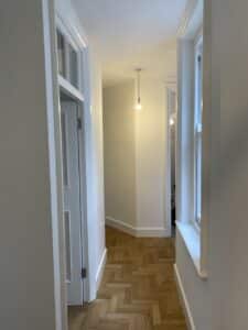 Complete works to internal common parts and hallway. This full of character and style property in the heart of Marylebone needed some serious makeover, change of colours and new carpet as well as new light fittings in keeping with the overall style of the building. The design provided by Mrs Julia Watenphul and our company’s execution resulted in a totally transformed hallway and communal parts giving the old and tired new lease of life.